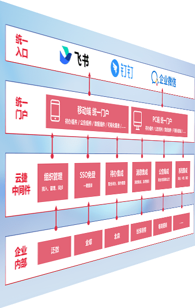 对协作平台提供支持服务,,支持企业应用与协作平台对接,,,包含组织同步、、、、消息集成、、、待办集成等。。。。支持目前主流的协作平台:钉钉、、企微和飞书。。。。